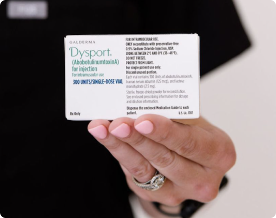 Dysport® (abobotulinumtoxinA) is an injectable neuromodulator that temporarily relaxes specific muscles responsible for expression lines, especially between the brows (glabellar lines). A few small injections in targeted points work to soften wrinkles caused by repeated movement, helping your skin appear smoother and more youthful.