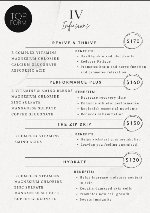 The IV Drip Therapy Experience at Top Form- Are you ready to Drip with Us?!